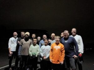 14 PAX showed up in multiple age groups. Great to see the 2.0’s getting up and putting work in during their break, and the HIM that they look up. A welcomed 45 degrees got us going and there was some flirting sprinkles, but not enough to get many complaining. Maybe a couple though.